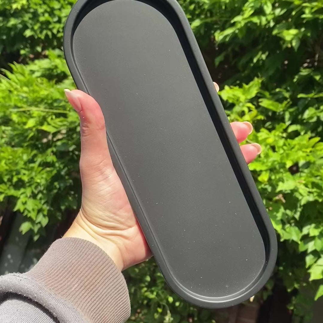 This Black Concrete Stone Tray is the perfect addition to any shelf or countertop. Its modern stoneware design is ideal for elevating any room, while adding a unique and stylish look. Its durable construction ensures it lasts for years of use. It has grippers underneath for easy and secure placement, keeping fragile items safe against slippage.