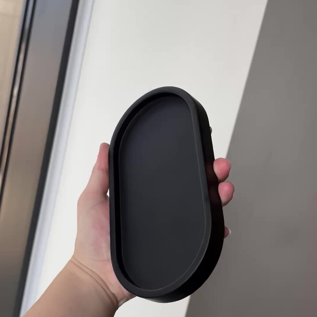 This Black Concrete Stone Tray is the perfect addition to any shelf or countertop. Its modern stoneware design is ideal for elevating any room, while adding a unique and stylish look. Its durable construction ensures it lasts for years of use. It has grippers underneath for easy and secure placement, keeping fragile items safe against slippage.