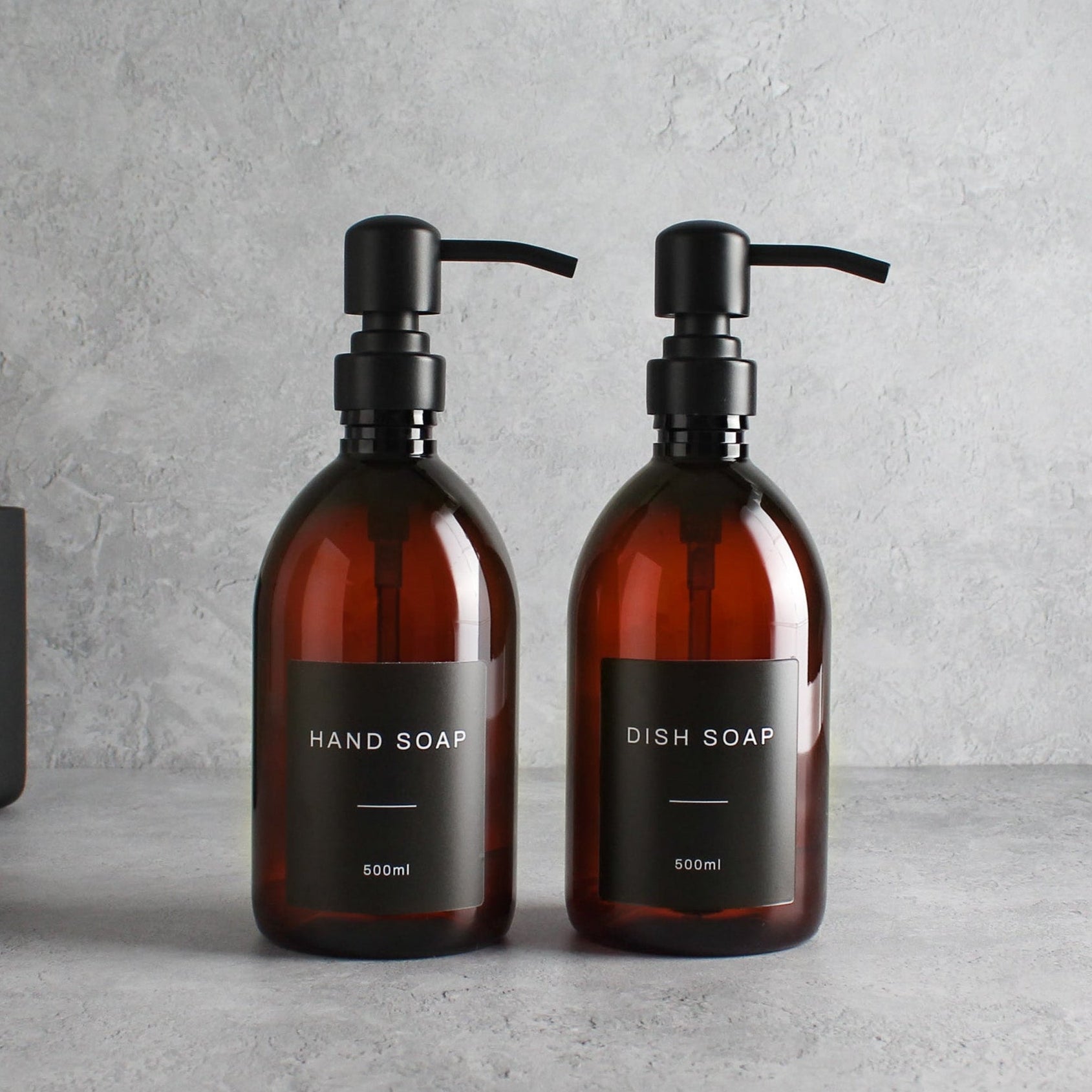 Offering a premium labelling solution, this simple yet gorgeous amber plastic bottle set will uplift your home whilst also beautifully displaying your chosen products. The pump dispenser is unscrewed allowing for easy refill with your chosen product. This allows you to reduce household plastic waste and will help you move over to an eco-friendly environment. A permanent labelling solution allowing you to add a modern look to your home. Also less prone to breakage compared to glass dispensers.