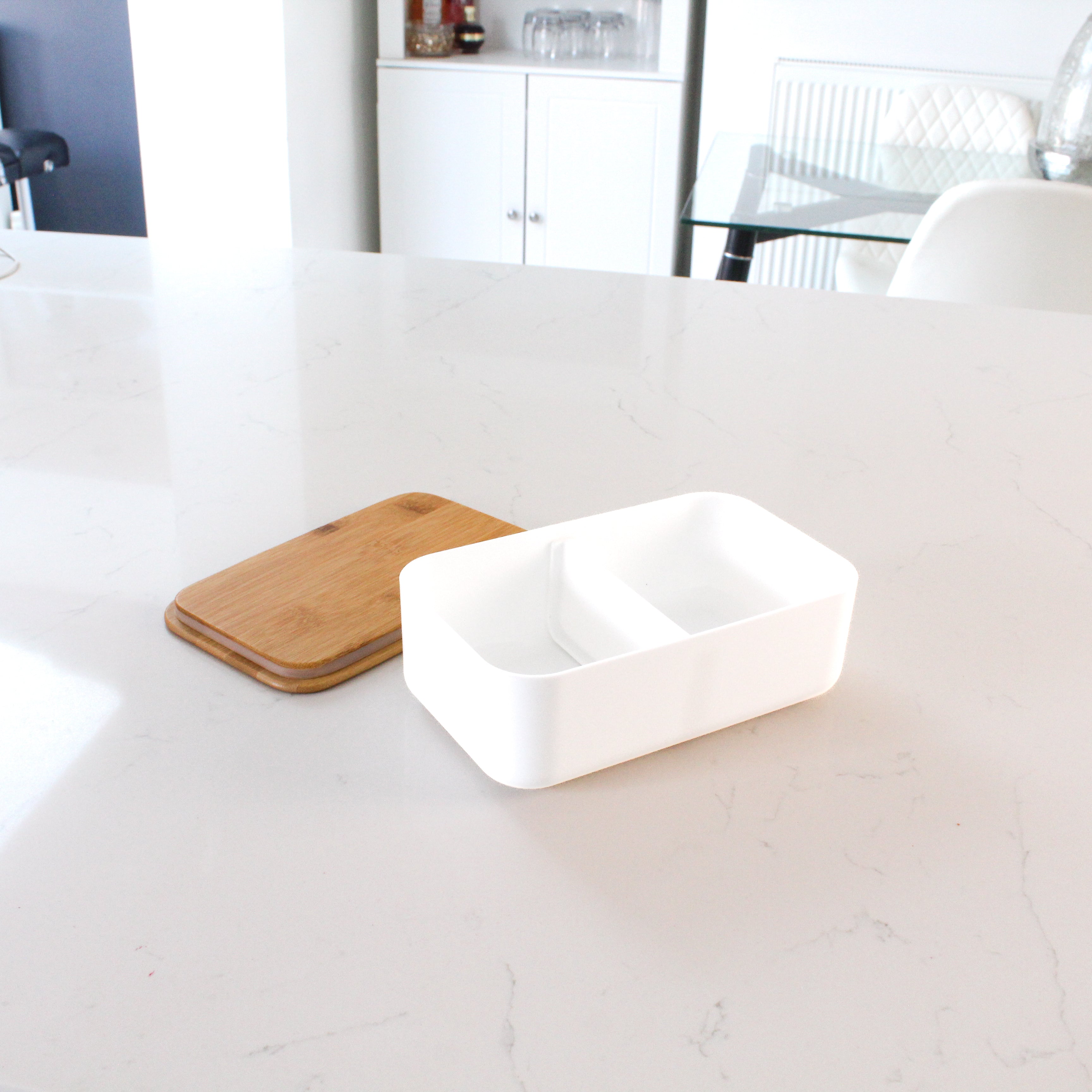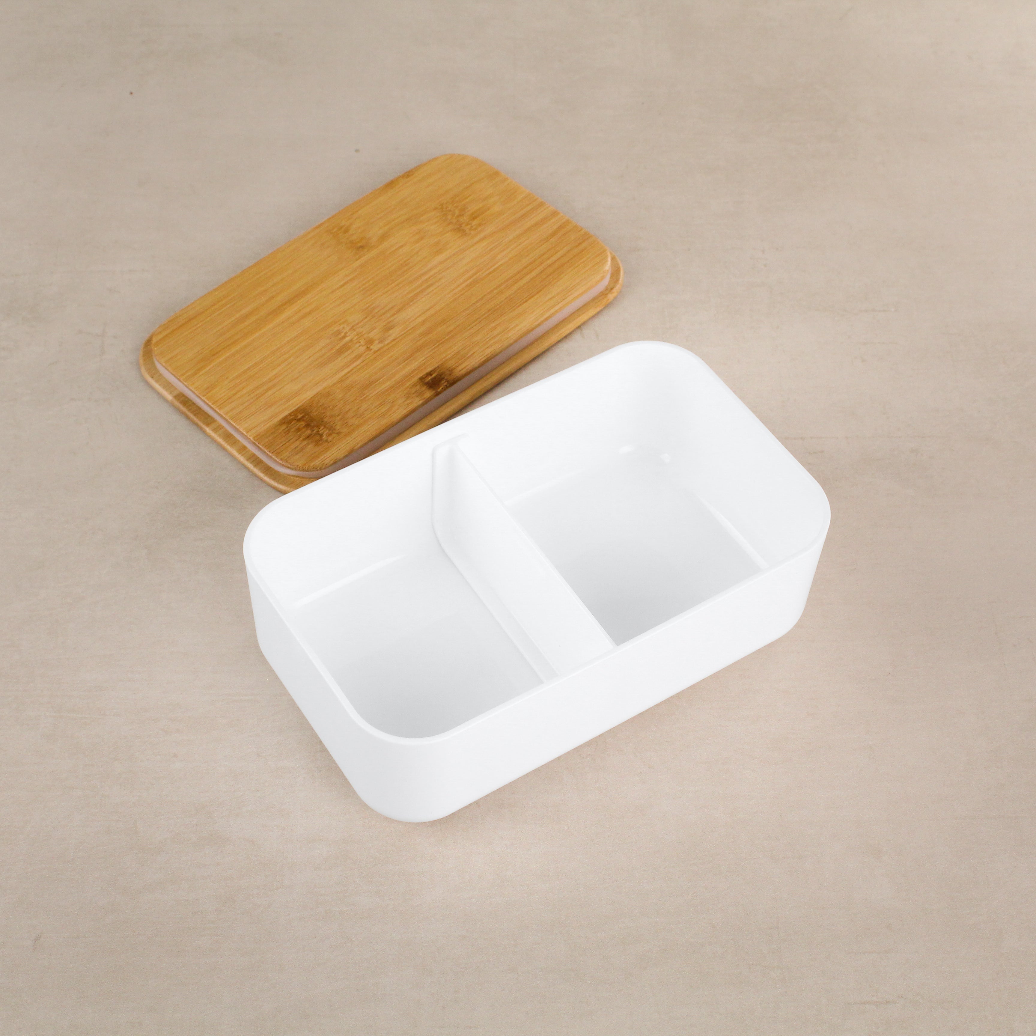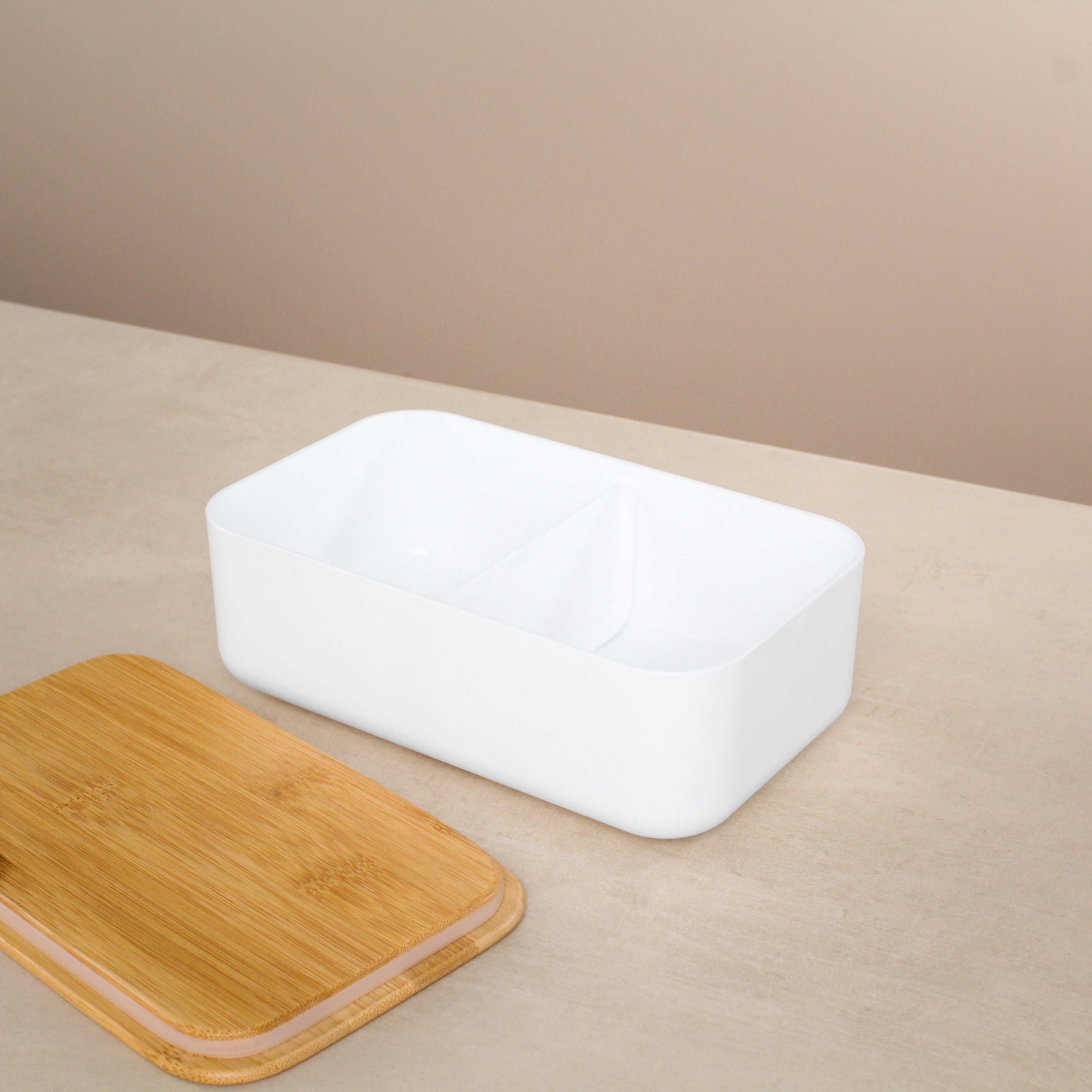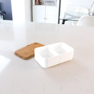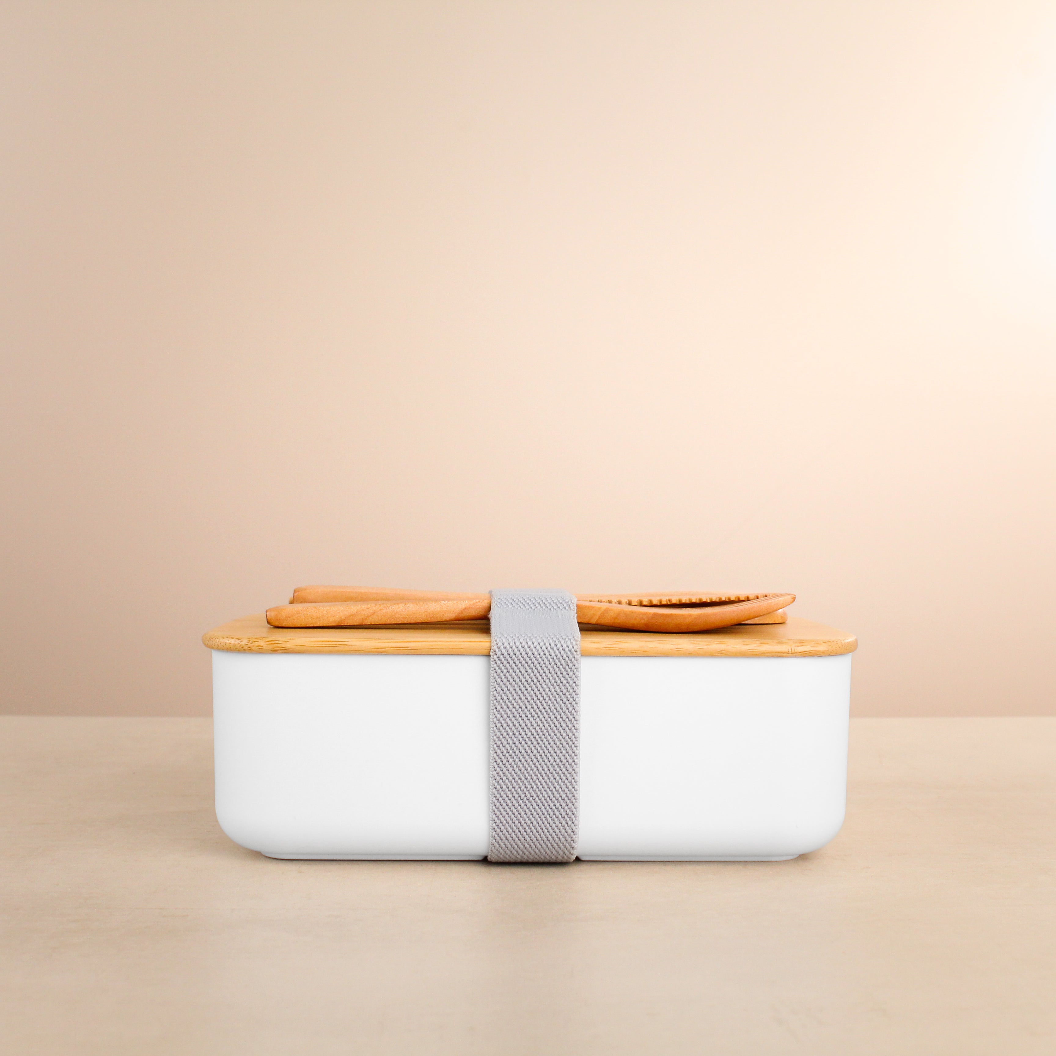 Our White Lunch Box with Bamboo Lid is the perfect blend of modern design and eco-friendly functionality. This sleek lunch box is designed to keep your meals fresh and secure on the go. The stunning bamboo lid adds a touch of natural elegance, while the secure band around the container ensures the lid stays firmly attached, preventing spills and leaks. Whether you're packing lunch for work, school, or a picnic, this lunch box is the ideal solution for carrying your meals in style.
