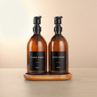 Offering a premium labelling solution, this simple yet gorgeous amber glass bottle set will uplift your home whilst also beautifully displaying your chosen products. The pump dispenser is unscrewed allowing for easy refill with your chosen product. This allows you to reduce household plastic waste and will help you move over to an eco-friendly environment. A permanent labelling solution allowing you to add a modern look to your home.