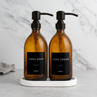 Offering a premium labelling solution, this simple yet gorgeous amber glass bottle set will uplift your home whilst also beautifully displaying your chosen products. The pump dispenser is unscrewed allowing for easy refill with your chosen product. This allows you to reduce household plastic waste and will help you move over to an eco-friendly environment. A permanent labelling solution allowing you to add a modern look to your home.