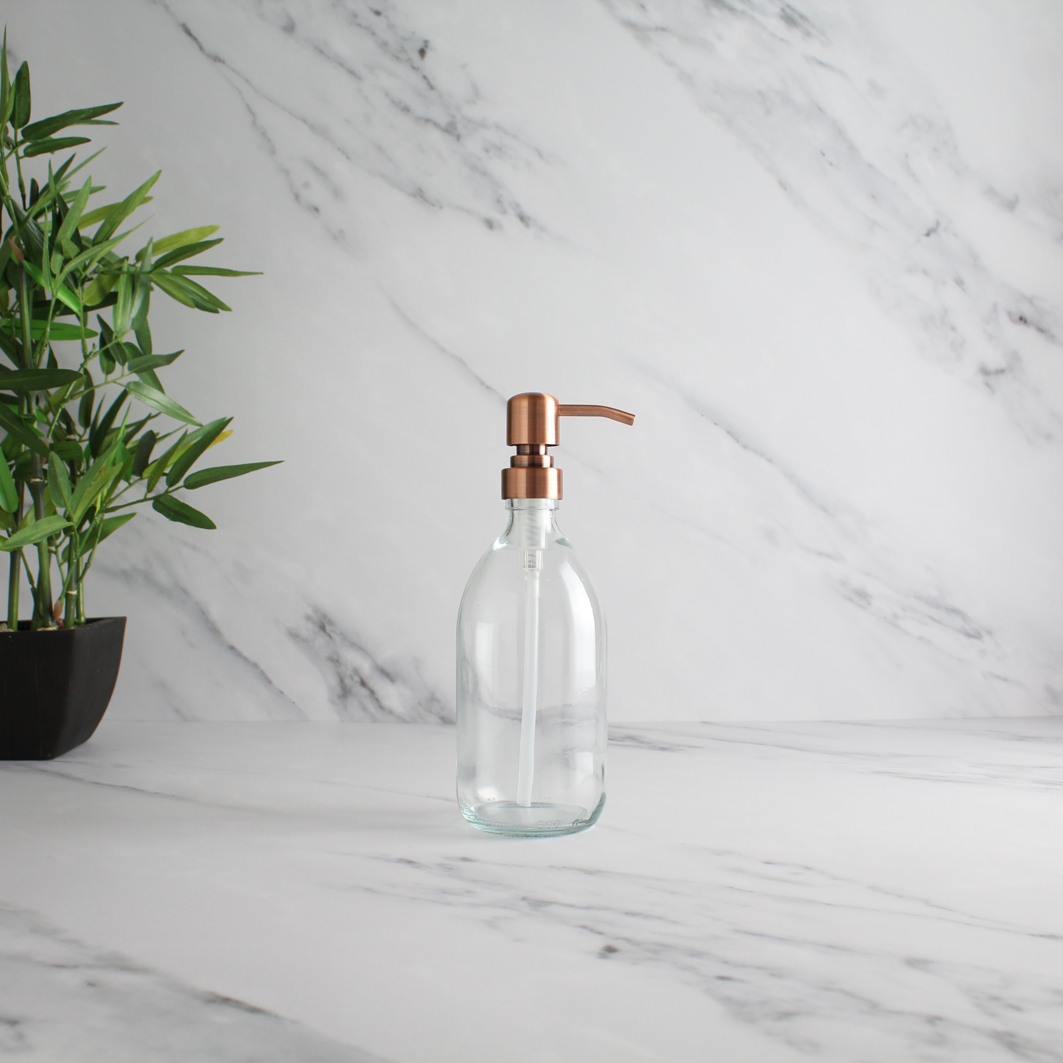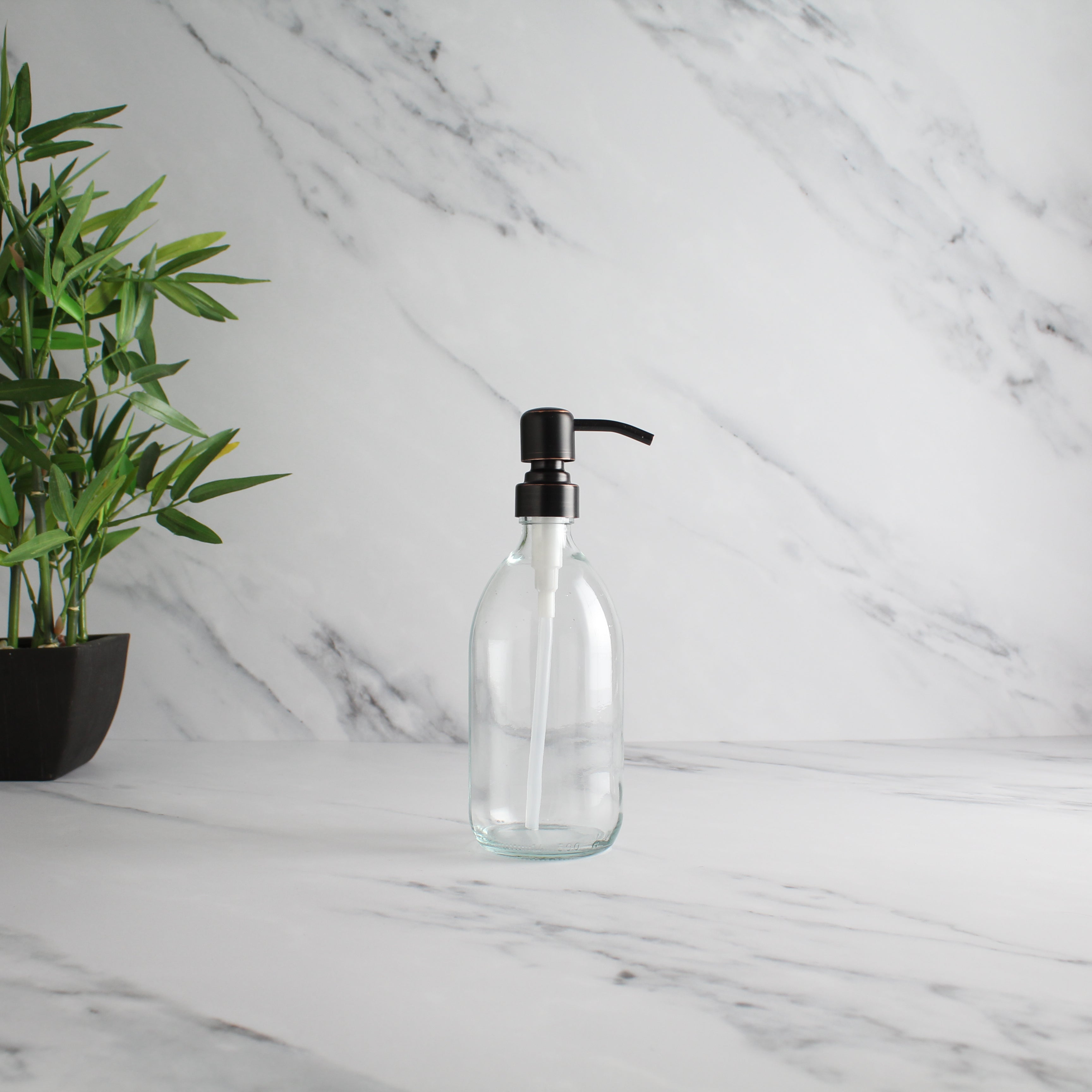 Explore the versatile nature of our clear bottles, featuring a spectrum of pump colors—matte black, gold, silver, chrome, brass, and rose gold. Opt for the sleek combination of black plastic pumps, seamlessly complementing the clear glass for a stylish aesthetic.