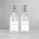 Offering a premium labelling solution, this simple yet gorgeous frosted white glass bottle set will uplift your home whilst also beautifully displaying your chosen products. The pump dispenser is unscrewed allowing for easy refill with your chosen product. This allows you to reduce household plastic waste and will help you move over to an eco-friendly environment. A permanent labelling solution allowing you to add a modern look to your home.