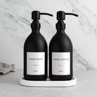 Offering a premium labelling solution, this simple yet gorgeous matte black glass bottle set will uplift your home whilst also beautifully displaying your chosen products. The pump dispenser is unscrewed allowing for easy refill with your chosen product. This allows you to reduce household plastic waste and will help you move over to an eco-friendly environment. A permanent labelling solution allowing you to add a modern look to your home.