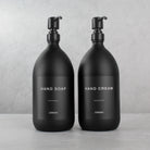 Hand Soap & Hand Cream Matte Black Glass Set