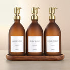 3 x Namie Frosted Amber Glass Dispenser Bottles (pre-labelled as hand soap, dish soap and hand cream)