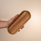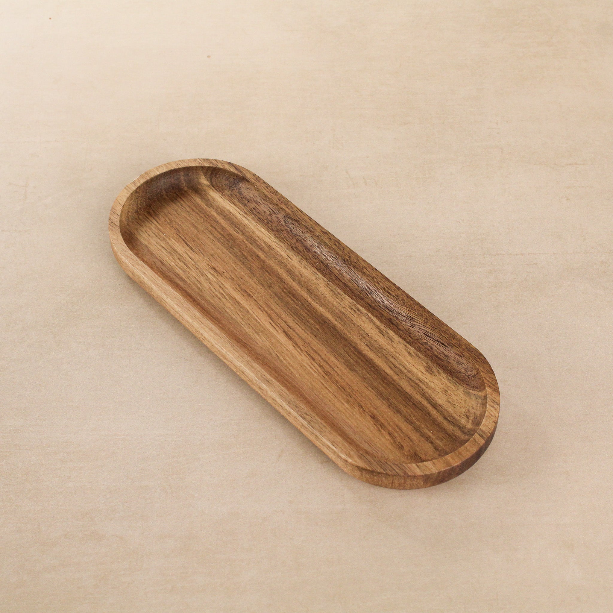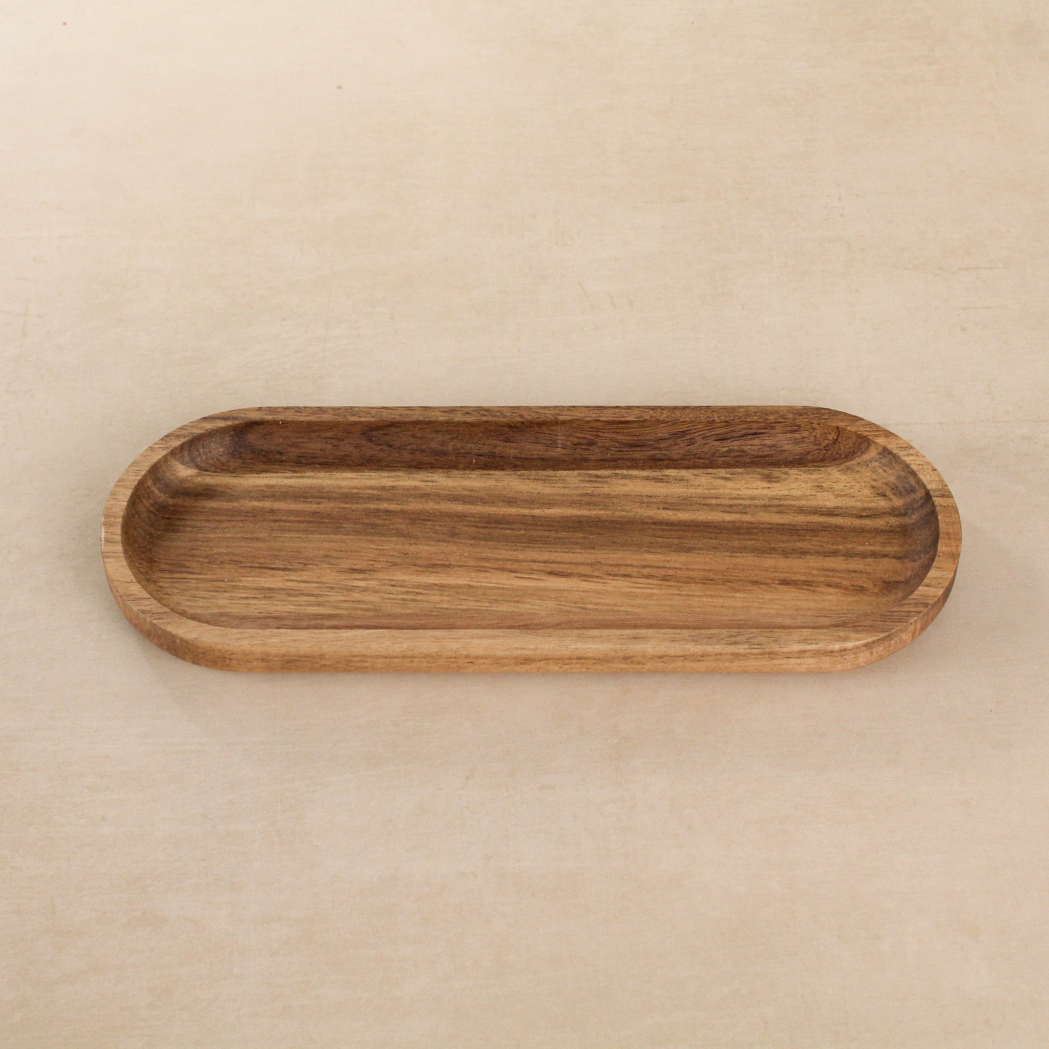 Acacia Tray & Frosted Amber Glass Dispenser Triple Set