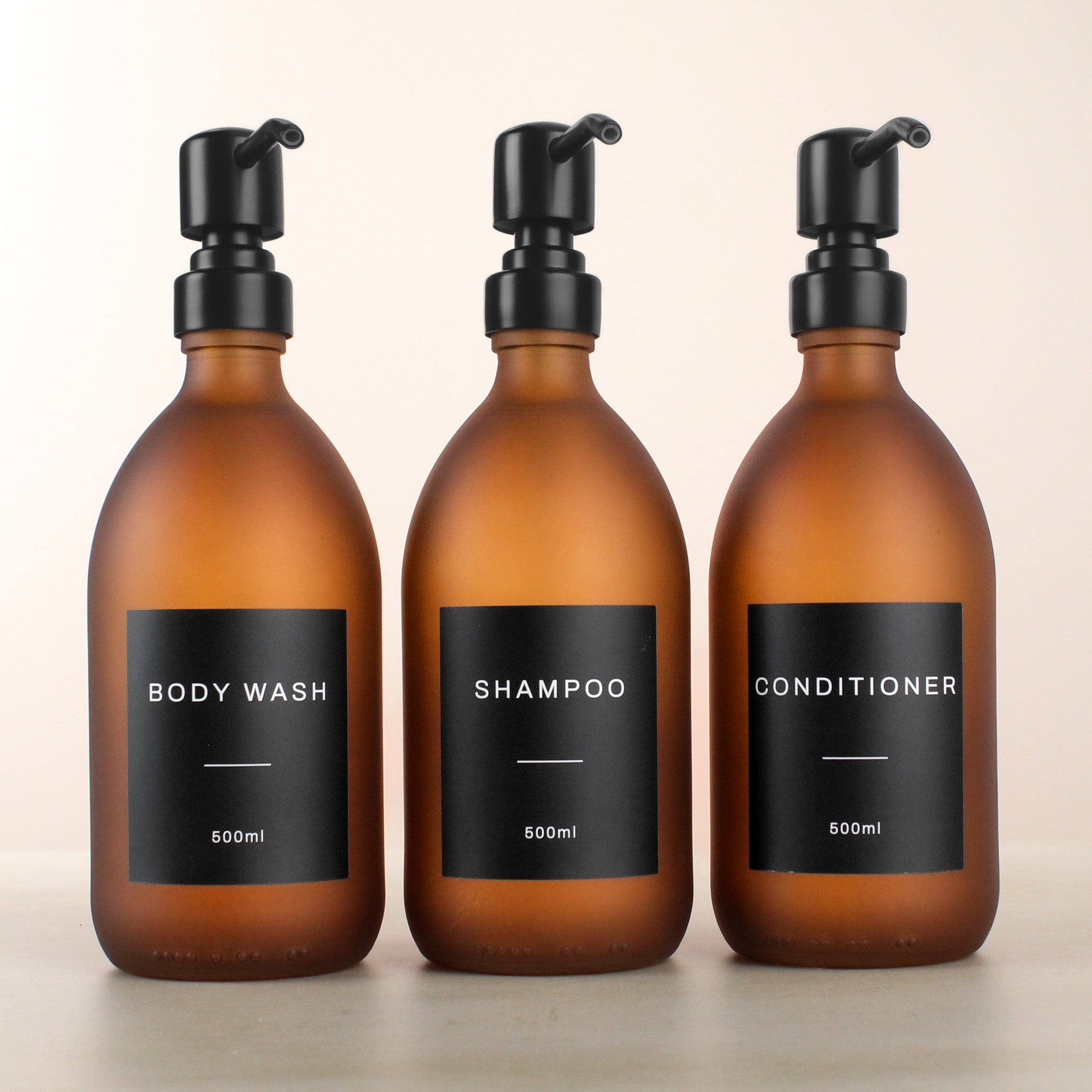 Body Wash, Shampoo & Conditioner Frosted Amber Glass Set