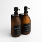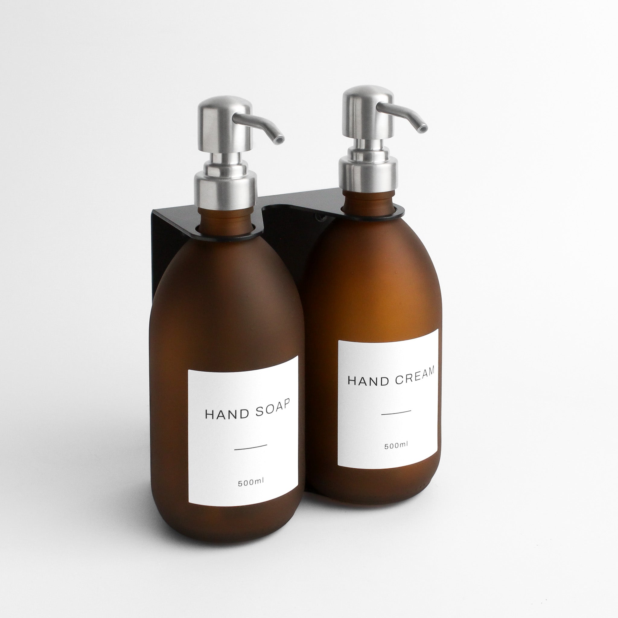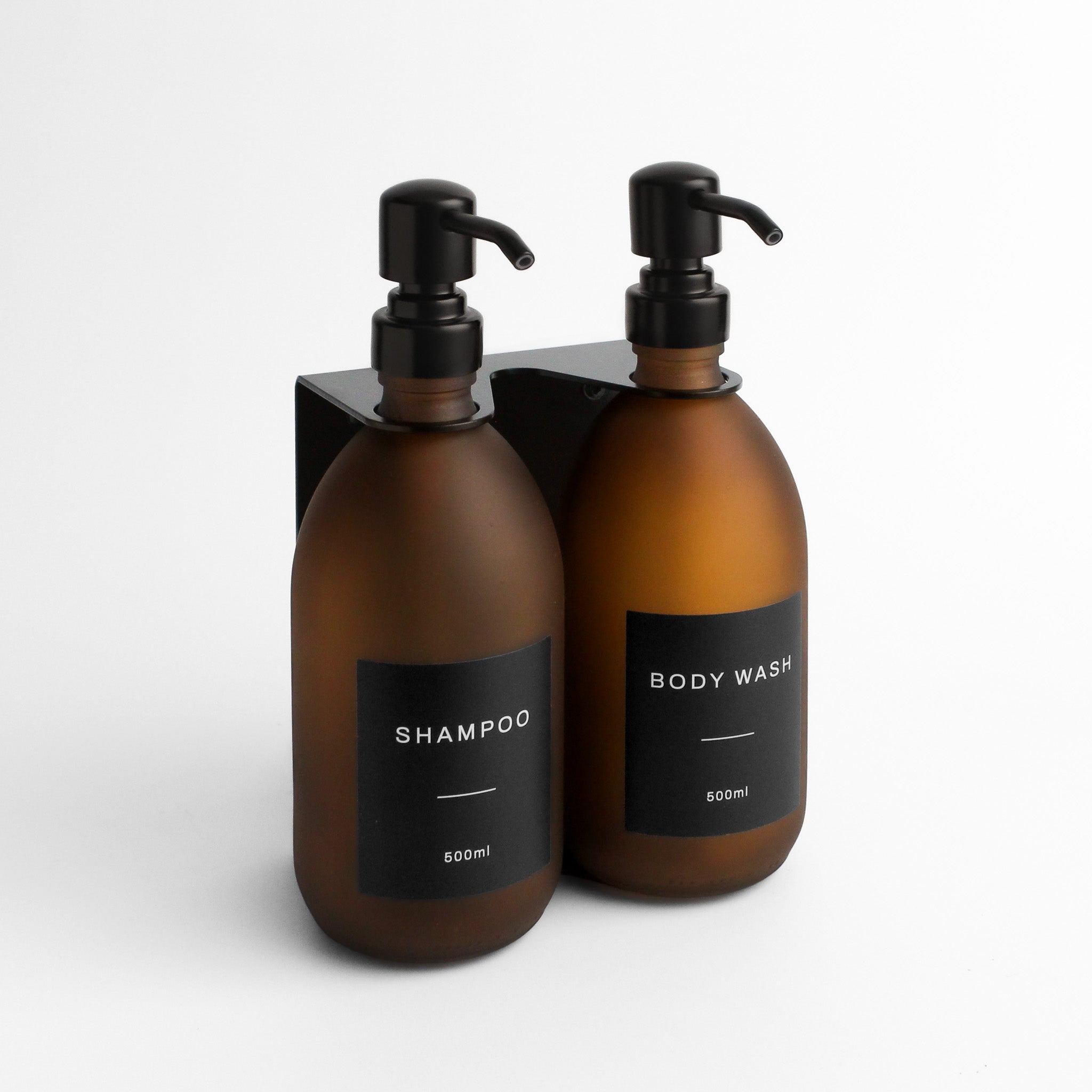 Black Wall Bracket & Frosted Amber Glass Dispenser Set
