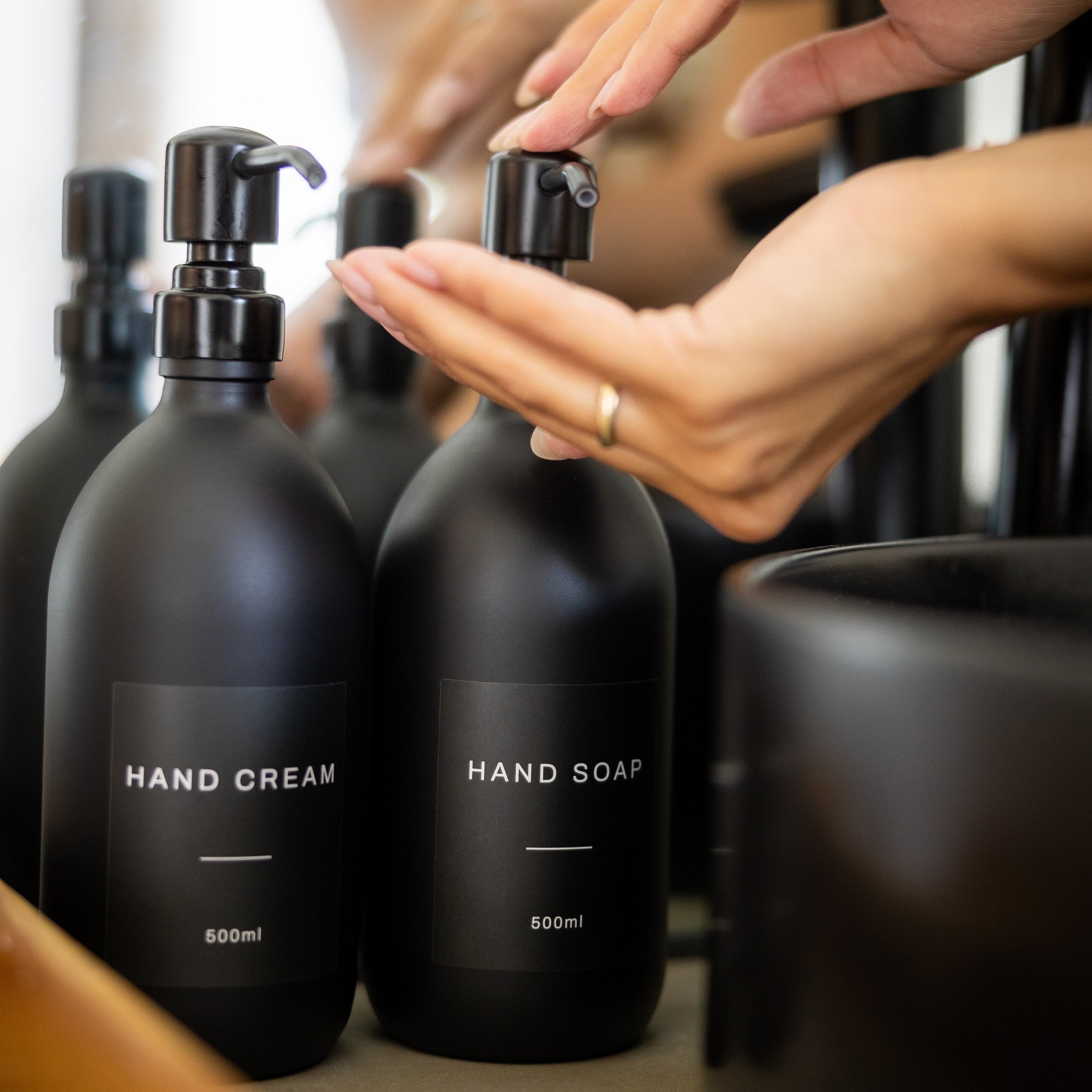 - Premium metal matte black pump dispenser.