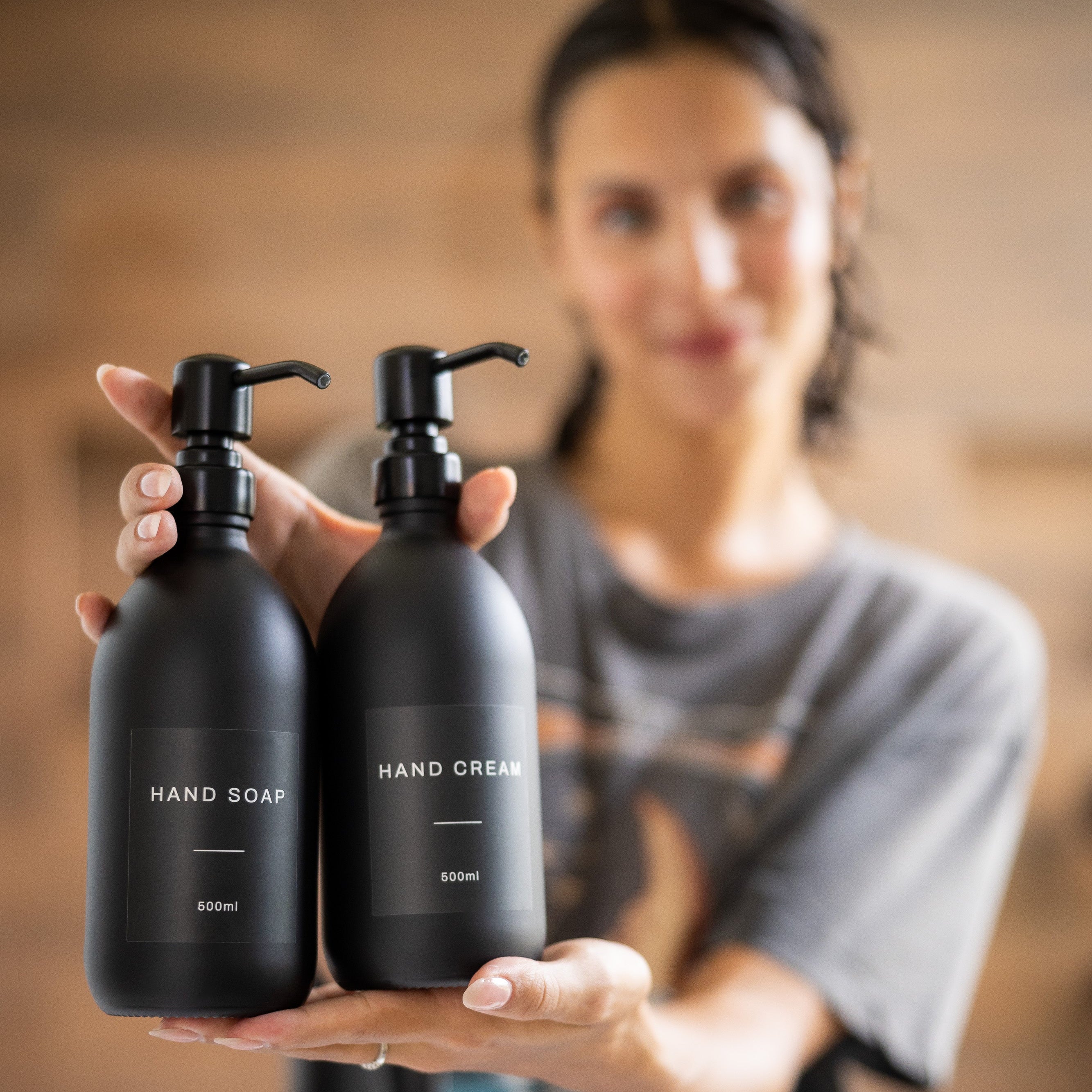 500ml Labelled Matte Black Glass Dispenser