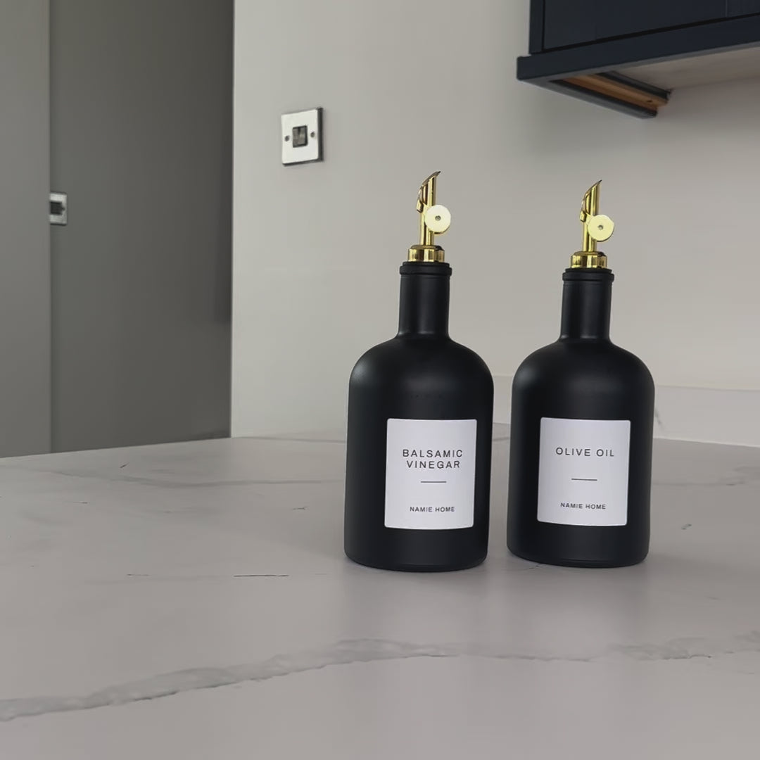 Matte Black Glass Tall Neck Oil Bottle With Label