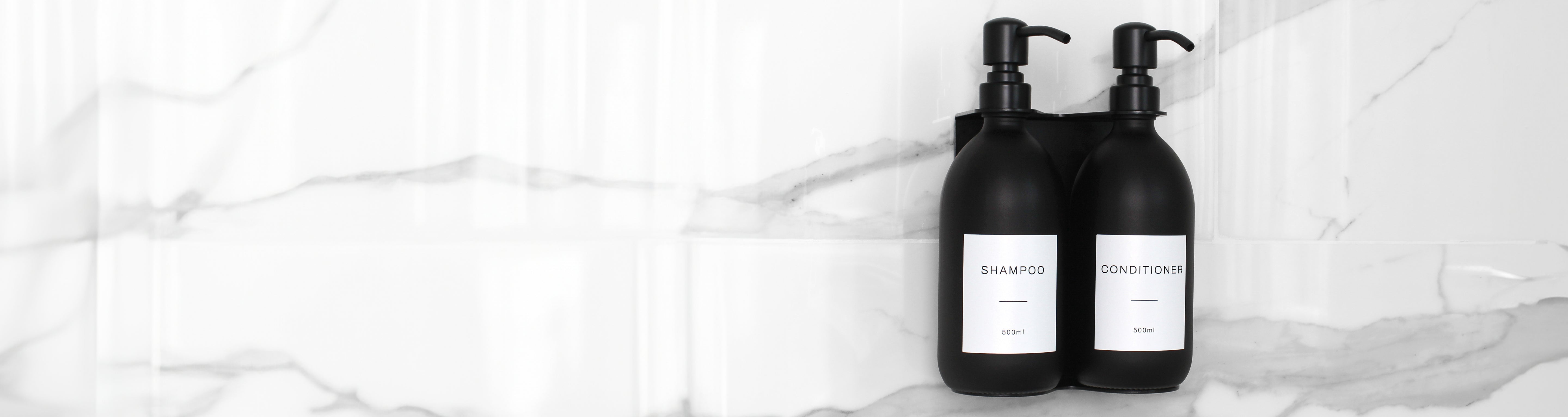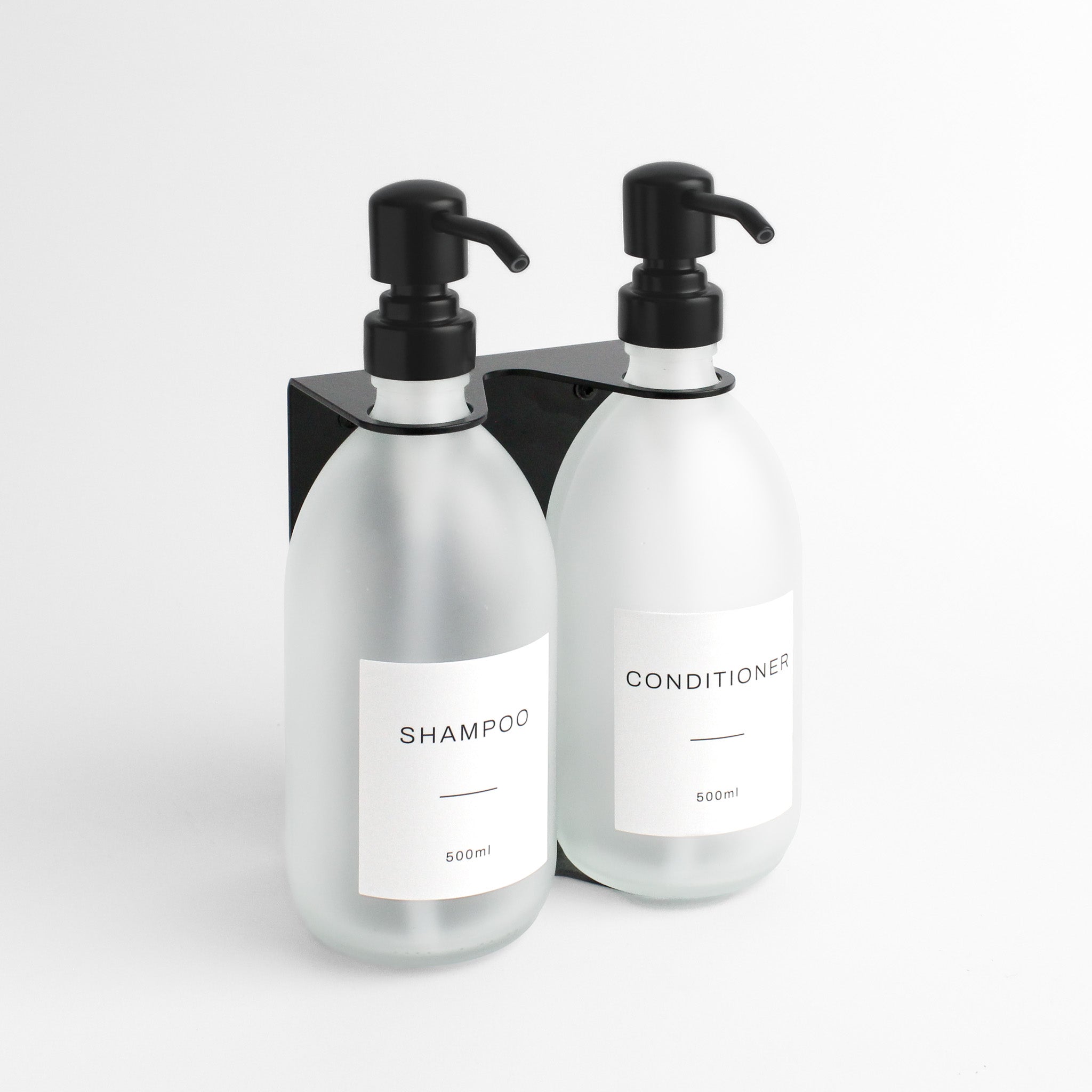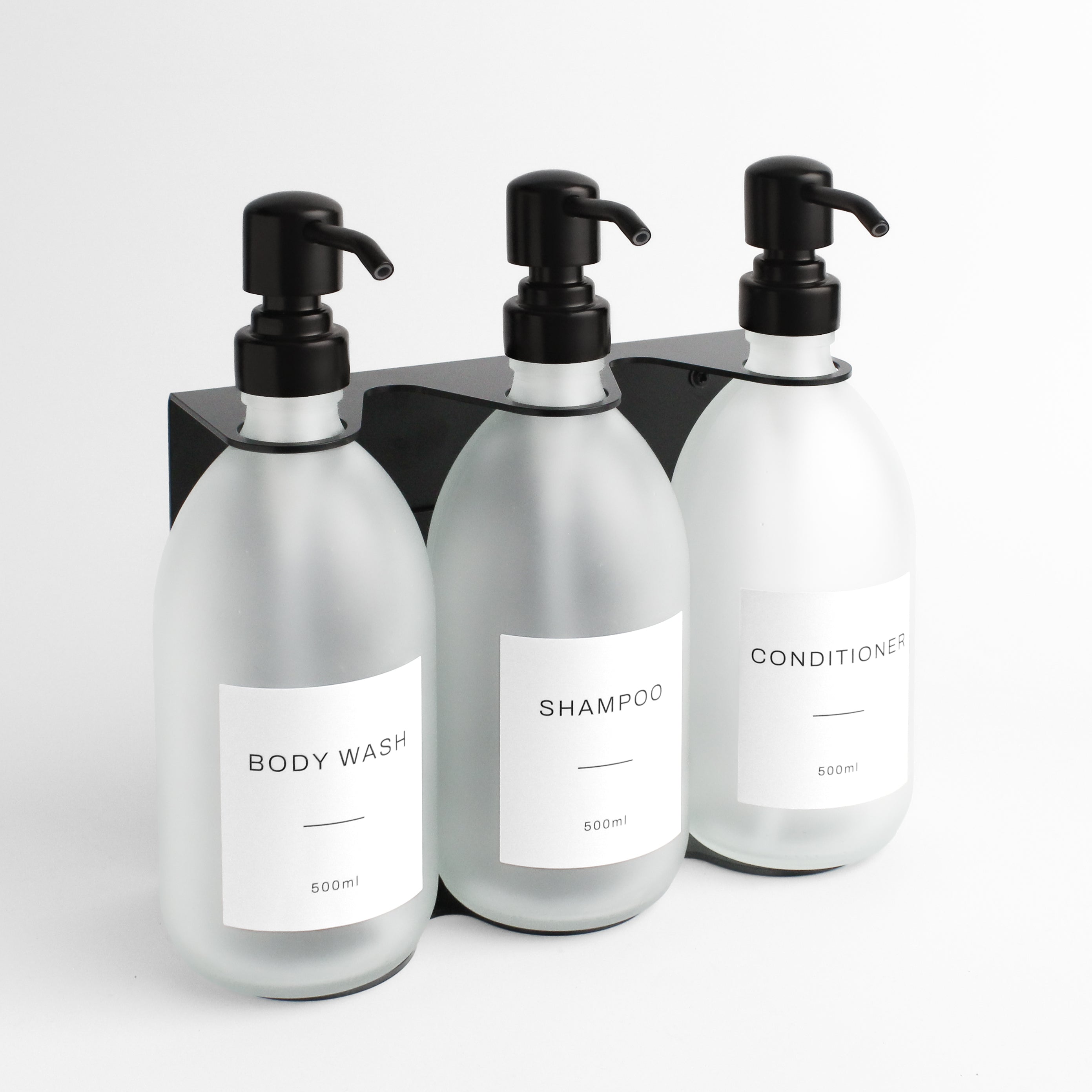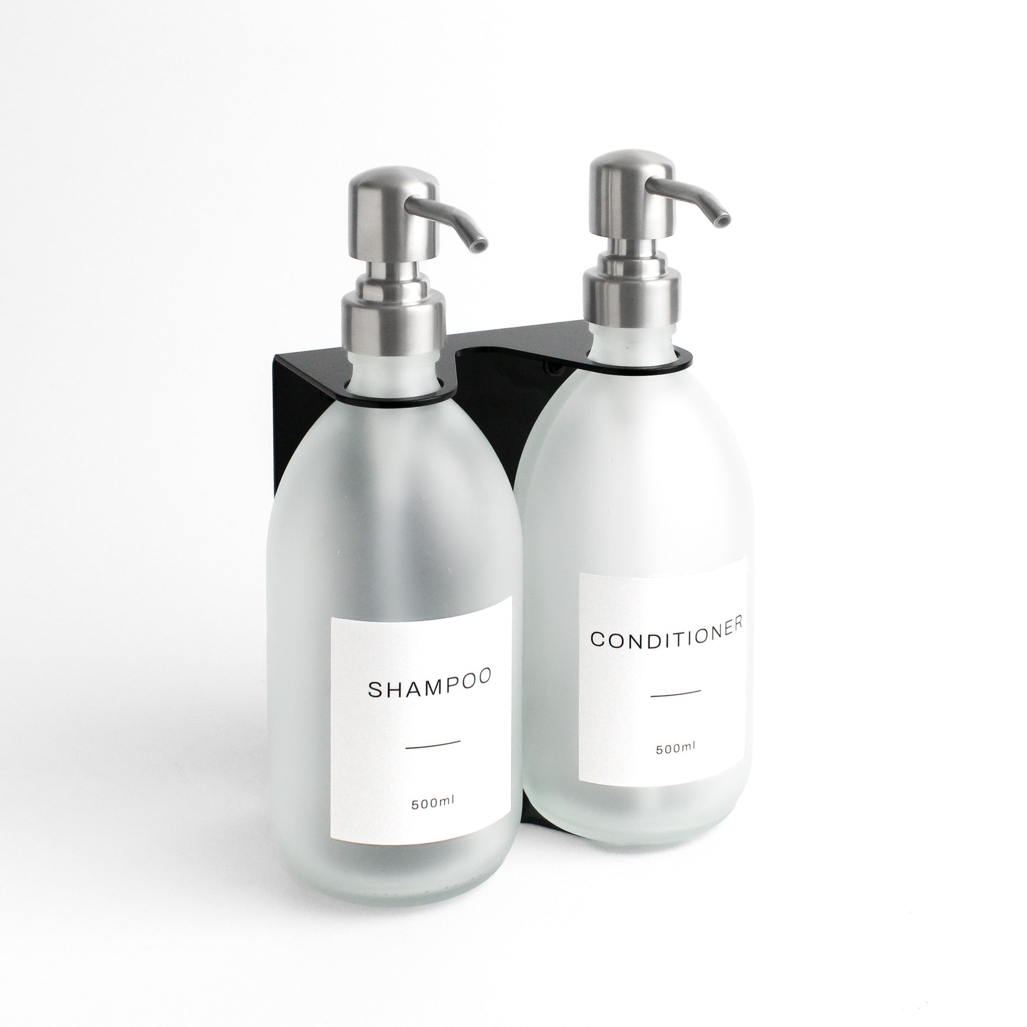Revitalize your bathroom's aesthetic with the distinctive charm of glass shampoo and conditioner bottles.