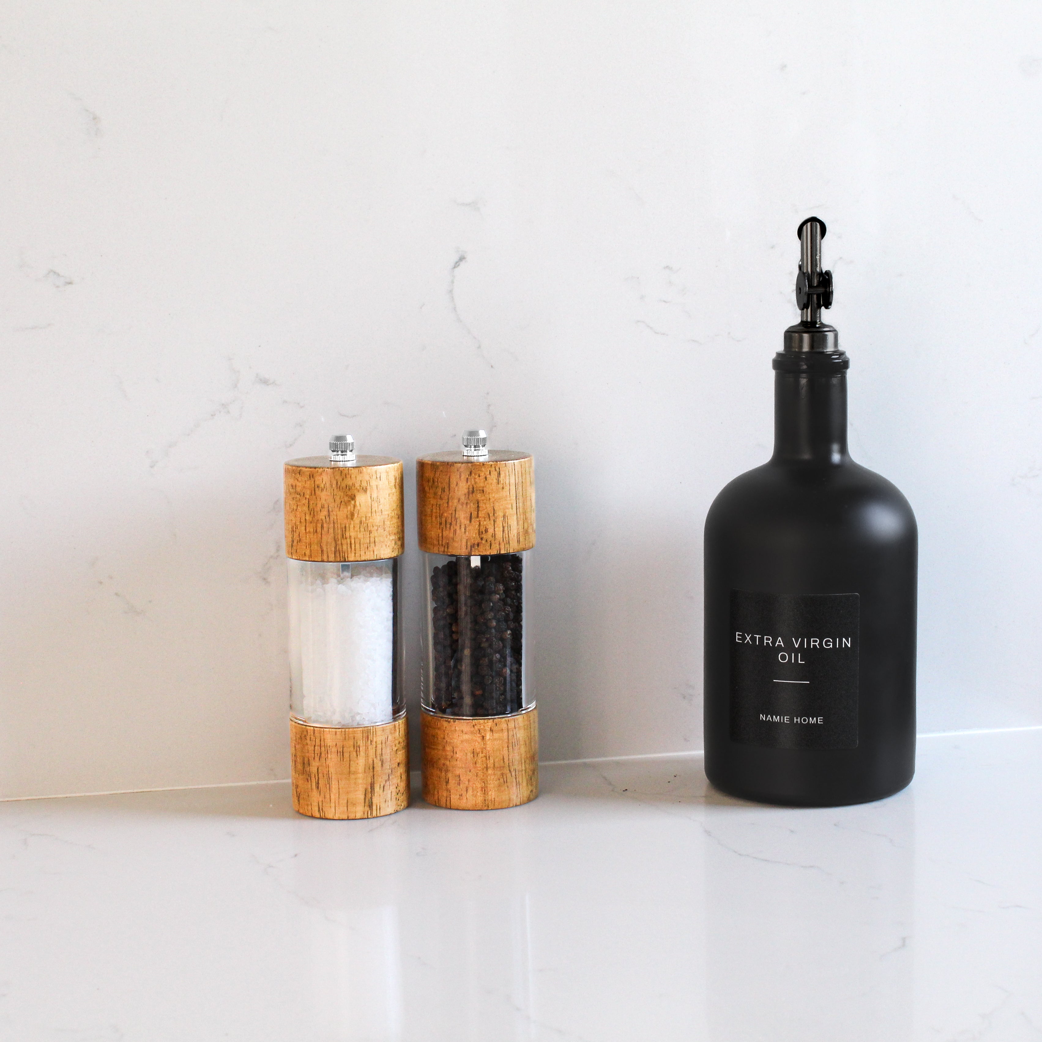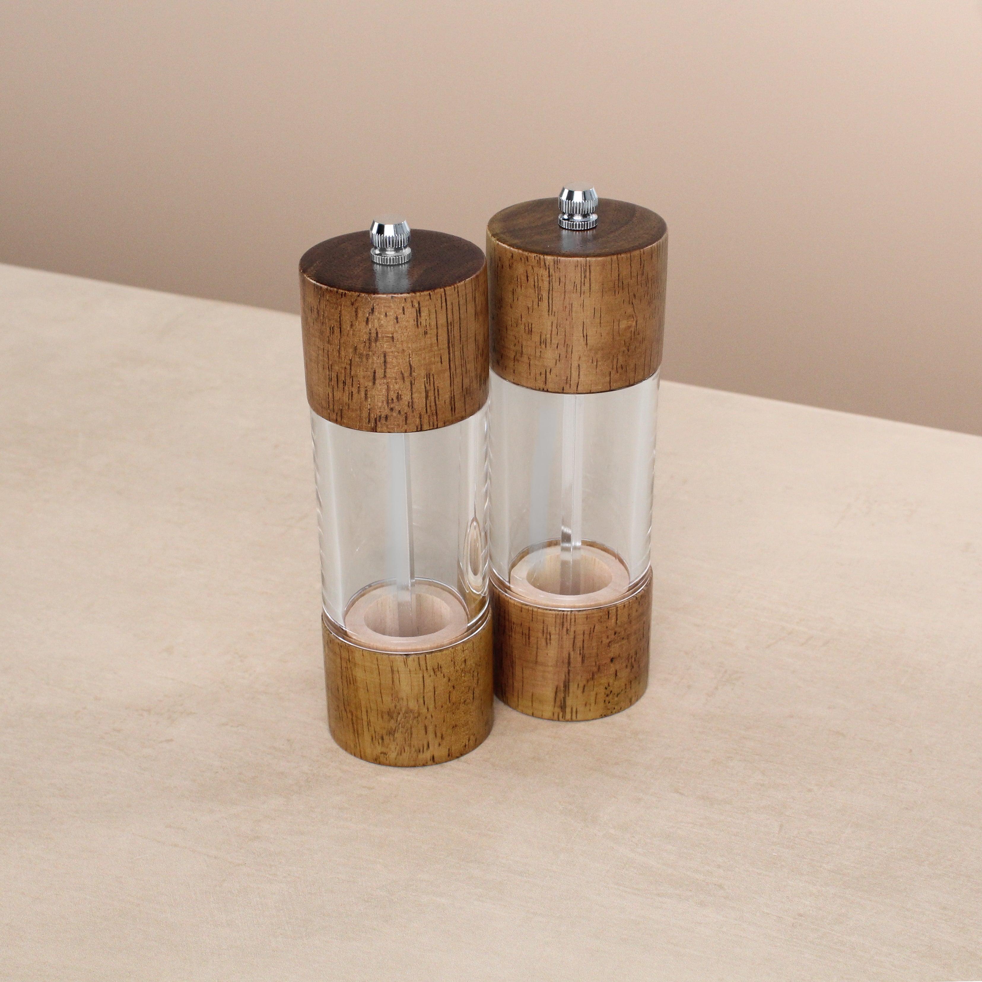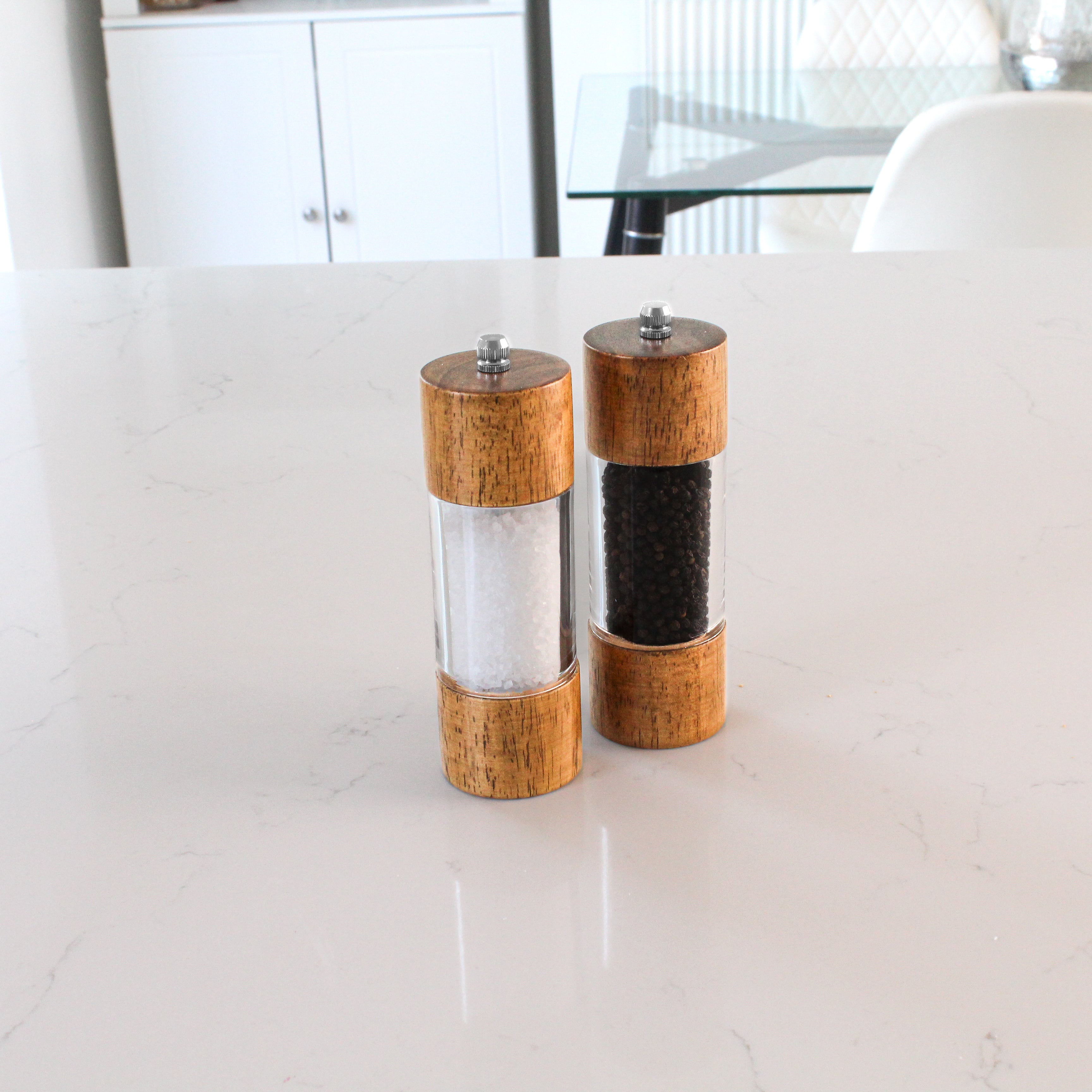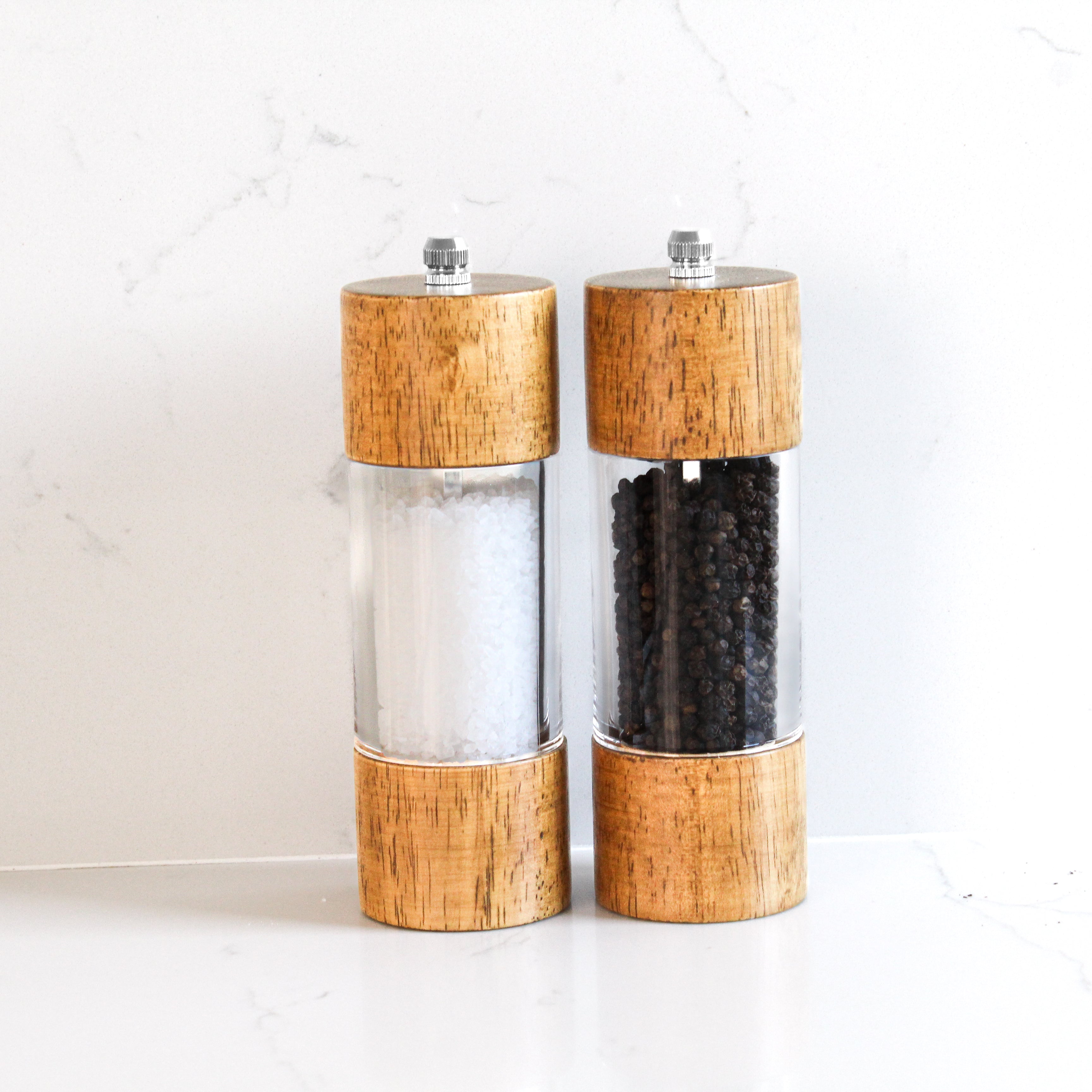 Also featured are our stylish salt and pepper mills, spice pots with wooden spoons, and storage jars with wooden lids, each crafted to blend seamlessly into your sustainable lifestyle. The tea, coffee, and sugar sets with acacia and bamboo lids add the perfect touch of natural elegance to your kitchen, keeping your essentials organized and beautifully displayed.