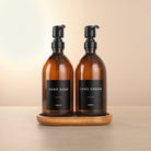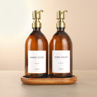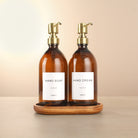 This Amber Glass Dispenser Double Set, featuring an Acacia Wood Tray, provides a stylish and practical solution for storing and dispensing soap. With a range of label and pump options, it ensures fragile items are kept safe on worktops and countertops in bathrooms and kitchens. Expertly designed and crafted, this set is a must-have for any home.